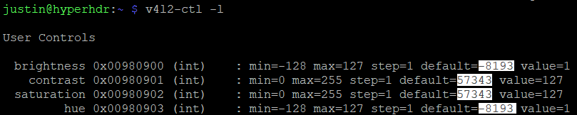 With certain capture devices, the default Hardware Picture settings are often very much wrong.To find the actual Minimum and Maximum values for each of these settings, we need to go back to the Terminal.